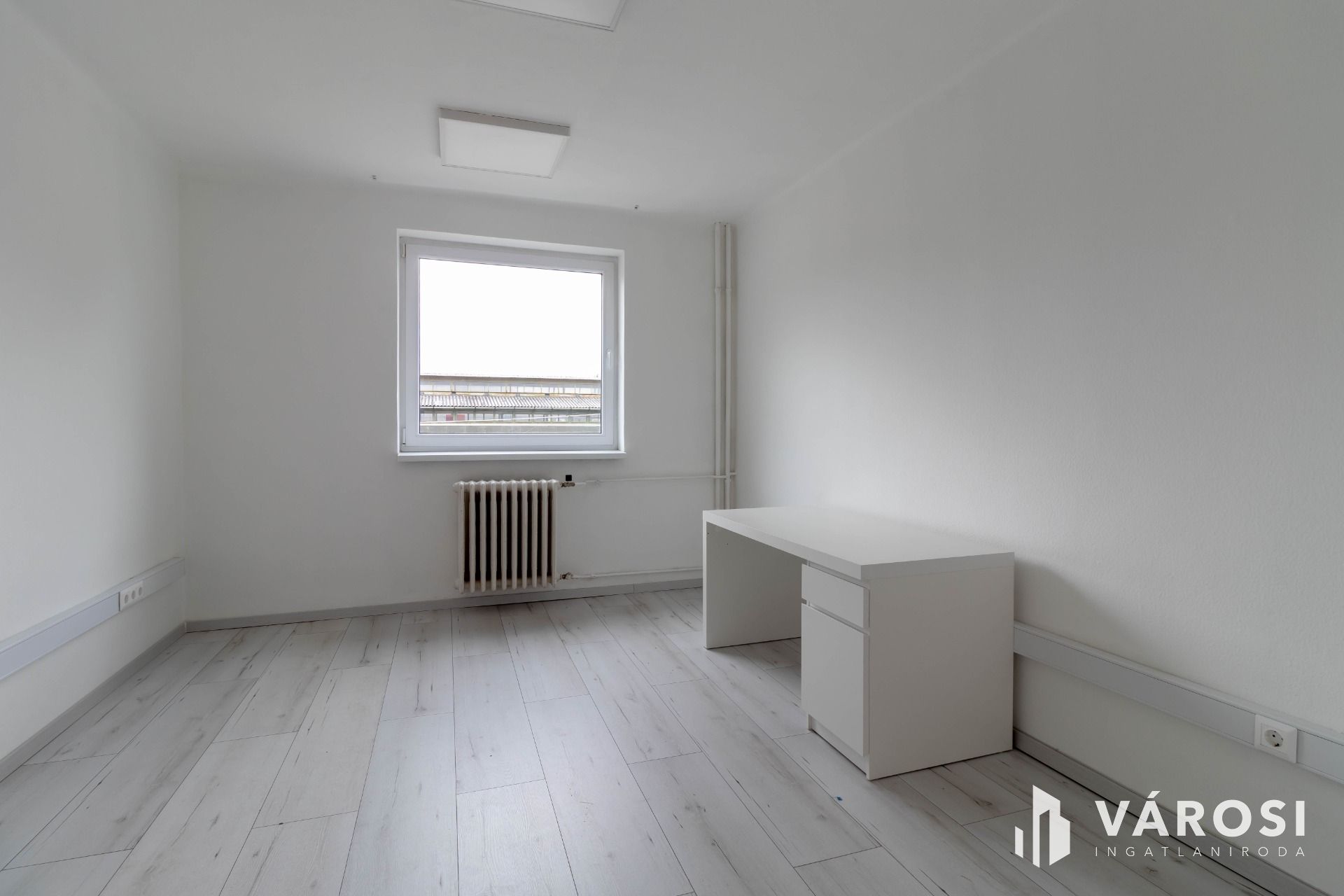 Az iroda egyébként bútorozatlan.