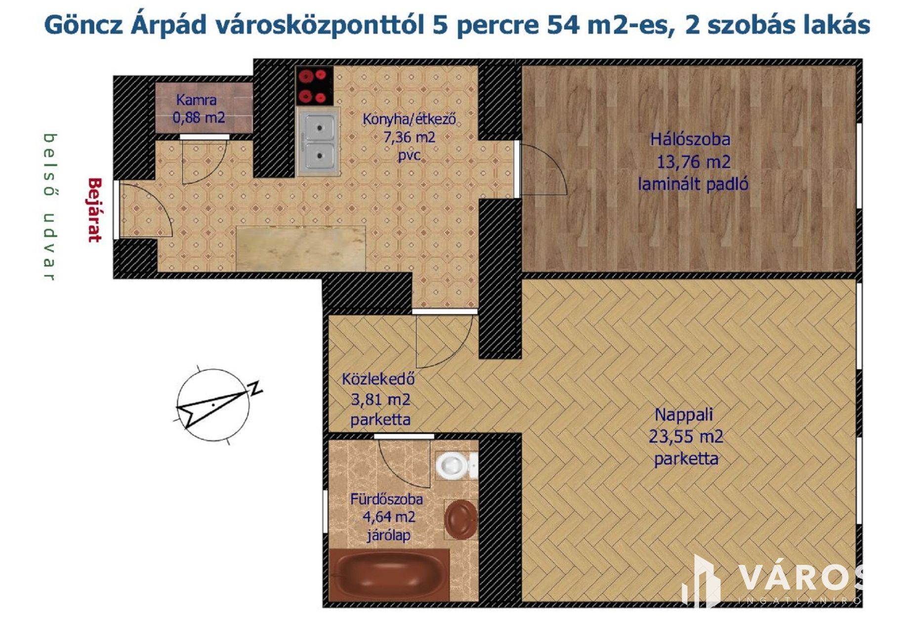 GÖNCZ ÁRPÁD VÁROSKÖZPONTTÓL 5 PERCRE 54 M2-ES, 2 SZOBÁS LAKÁS
