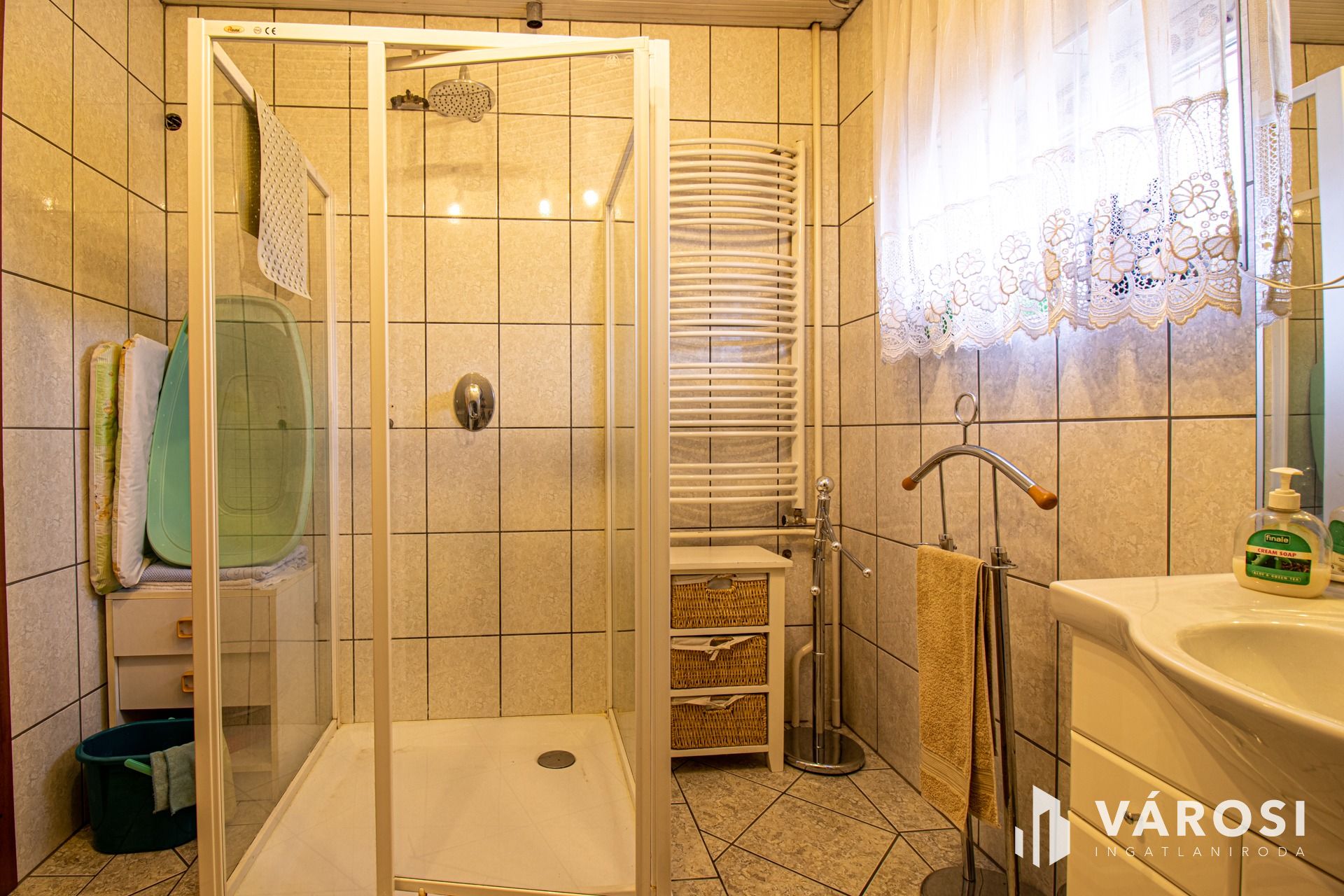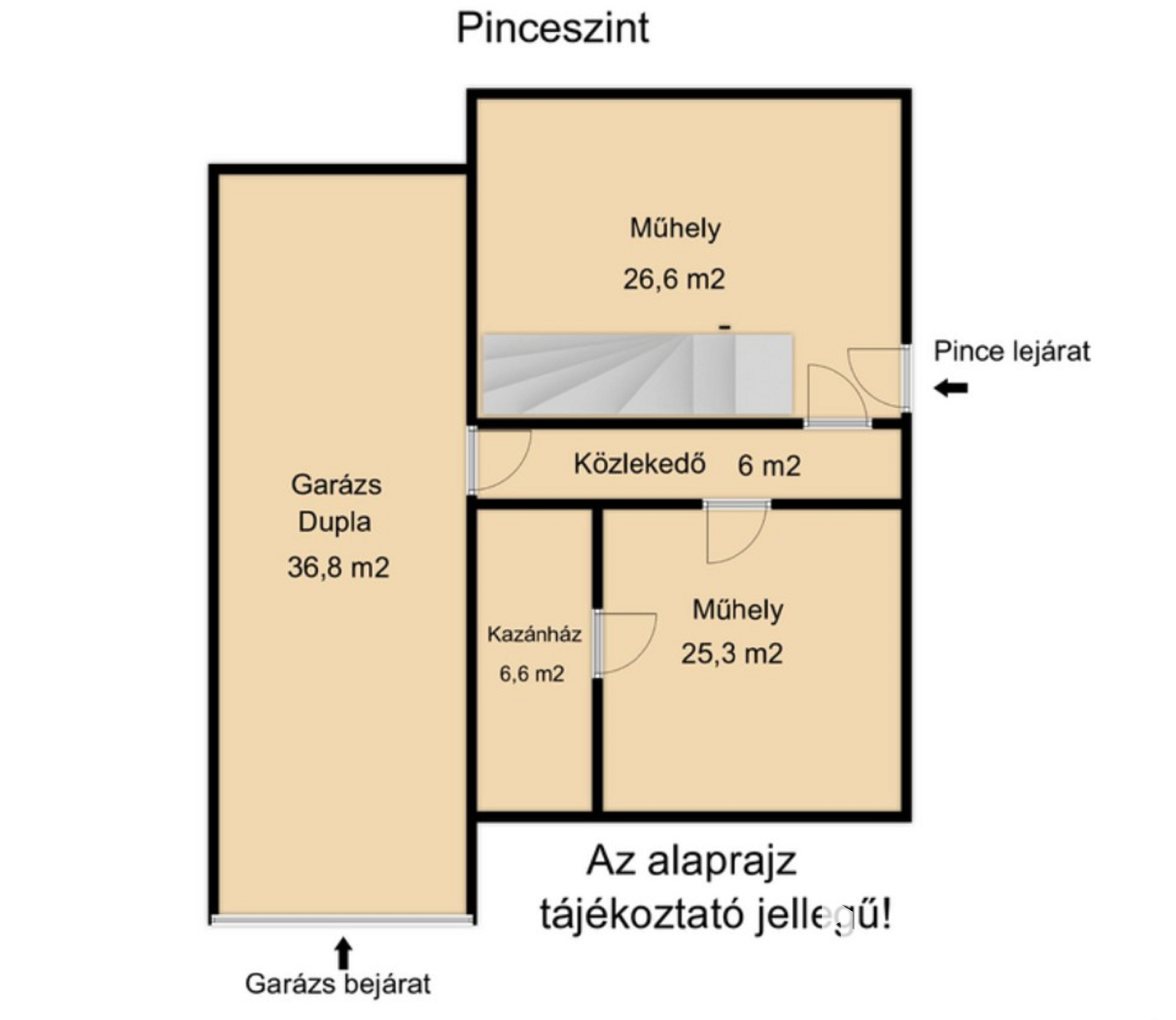 Az ingatlan pinceszintje lakhatóvá tehető, mivel rendelkezik ablakokkal, fűtéssel, WC-vel. (65 m2 - garázs nélkül)