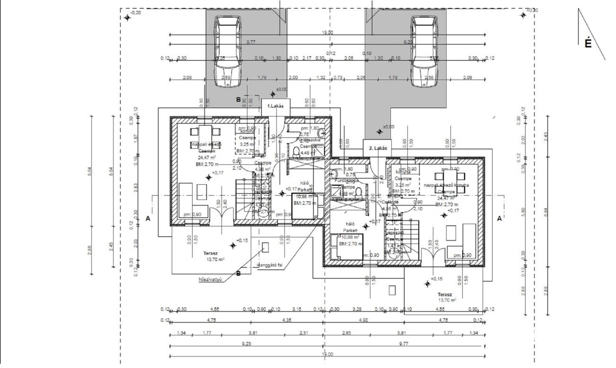 A 925 m²-es telken két különálló ikerházfél épül, melyek jelenleg szerkezetkész állapotban érhetők el 58 millió Ft-os áron ugyanakkor igény esetén kulcsrakész kivitelben 96 millió Ft-ért kerülnek átadásra. Ez kiváló lehetőség azok számára, akik szeretnének még beleszólni leendő otthonuk kialakításába – legyen szó burkolatokról vagy akár a helyiségek elrendezéséről.