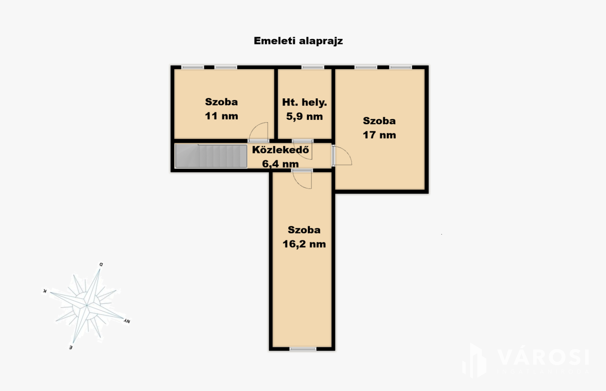 A lakás belső két szintes. A földszinten nappali, konyha étkező és egy fürdőszoba, valamint egy wc kapott helyet. Az emeleten van a három hálószoba és egy háztartási helyiség, ahol bőven van hely a mosáshoz és a teregetéshez is.